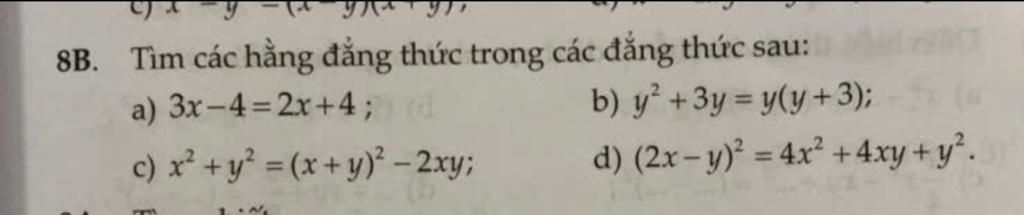 `c)` `(x+y)^2-2xy=x^2+2xy+y^2-2xy=x^2+y^2` (Đúng)