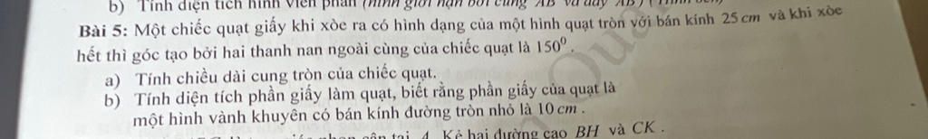 diện tích phần giấy quπạt = diện tích cả quạt - diện tích nan quạt không giấy