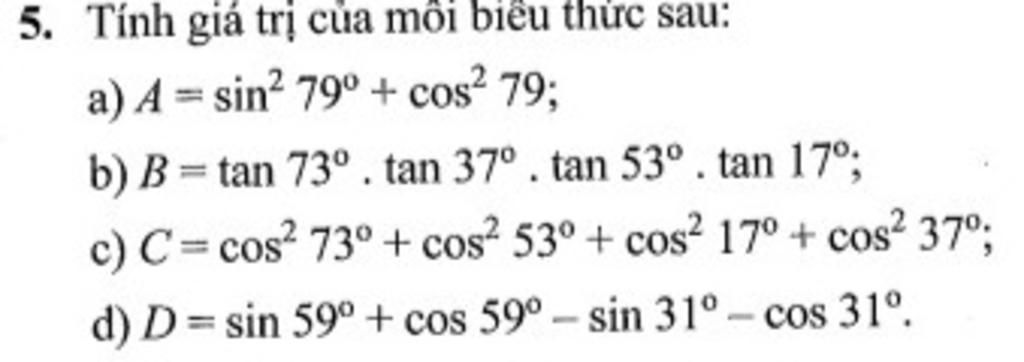 `D = sin59^@ + cos59^@ - sin31^@ - cos31^@`