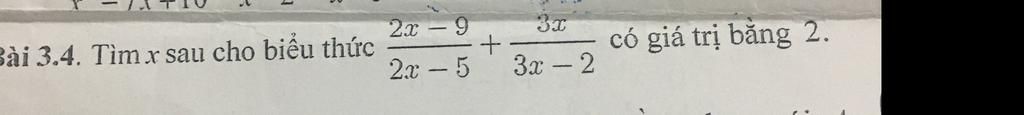 `<=>` `[(2x-9)(3x-2)]/[(2x-5)(3x-2)] + [3x(2x-5)]/[(2x-5)(3x-2)] = [2(2x-5)(3x-2)]/[(2x-5)(3x-2)]`