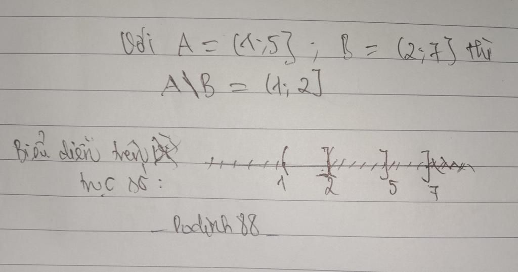 Cx k hiểu câu hỏi lắm nhưng đại khái là lấy phần thừa của B trong tập A nha. K bt bạn hiểu câu mình nói không nhưng chắc cx hơi khó hiểu nhỉ `->` Phần thừa là `2` trong đoạn `(1;5]` đk ạ