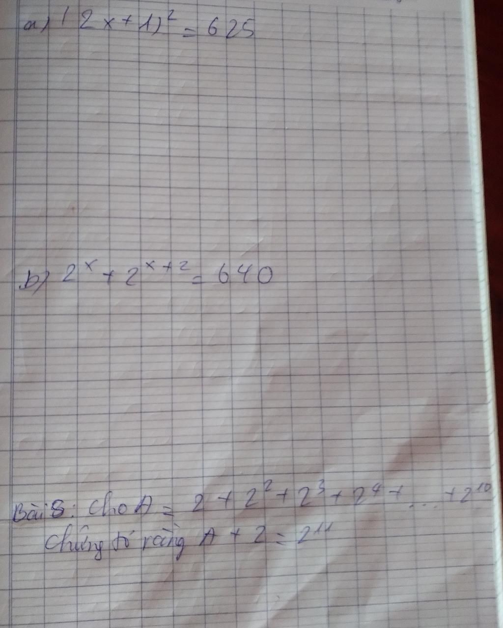 Bài 8: `A=2+2^2+2^3+2^4+...+2^10`