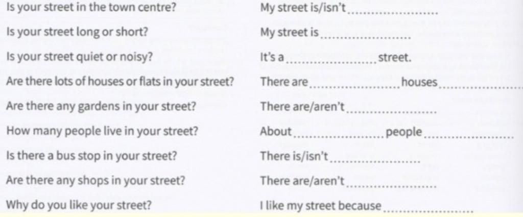 -There are ( nếu có) There aren't (nếu không ) thêm "in my street".