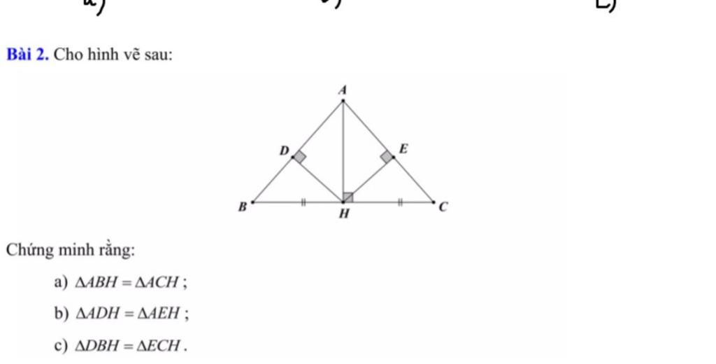 Vậy `triangle DBH = triangle ECH` (cạnh huyền - góc nhọn)