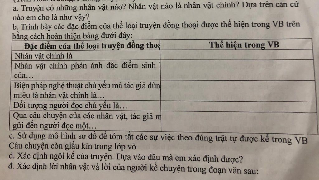 b. Trình bày các đặc điểm của thể loại truyện đồng thoại được thể hiện trong VB trên