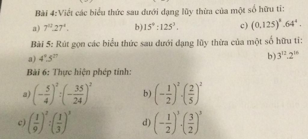 a) `(-5/4)^2 : (-35/24)^2 = (5/4)^2 : (35/24)^2 = (5/4 : 35/24)^2 = (5/4 . 24/35)^2 = (6/7)^2 = 36/49`