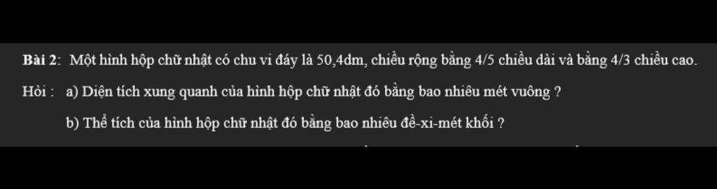 `text{ Chiều rộng của hình hộp chữ nhật là : `