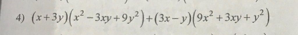 `(x+3y)(x^2-3xy+9y^2)+(3x-y)(9x^2+3xy+y^2)`