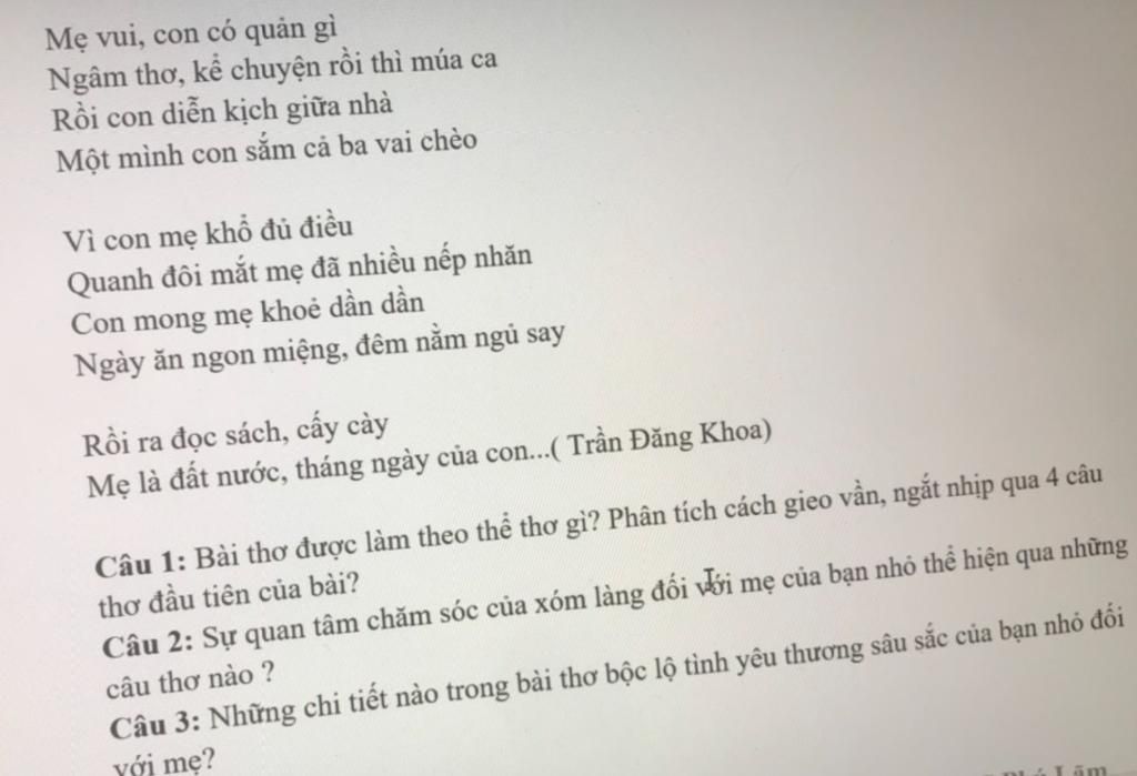 Câu 3: Những chi tiết bộc lộ tình yêu thương sâu sắc của bạn nhỏ đối với mẹ: