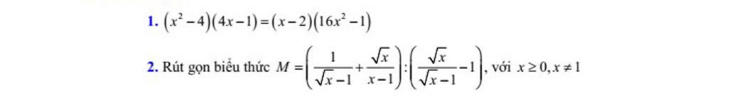 `M=( 1/(\sqrt{x}-1) + (\sqrt{x})/(x-1) ):( (\sqrt{x})/(\sqrt{x}-1) -1 )`