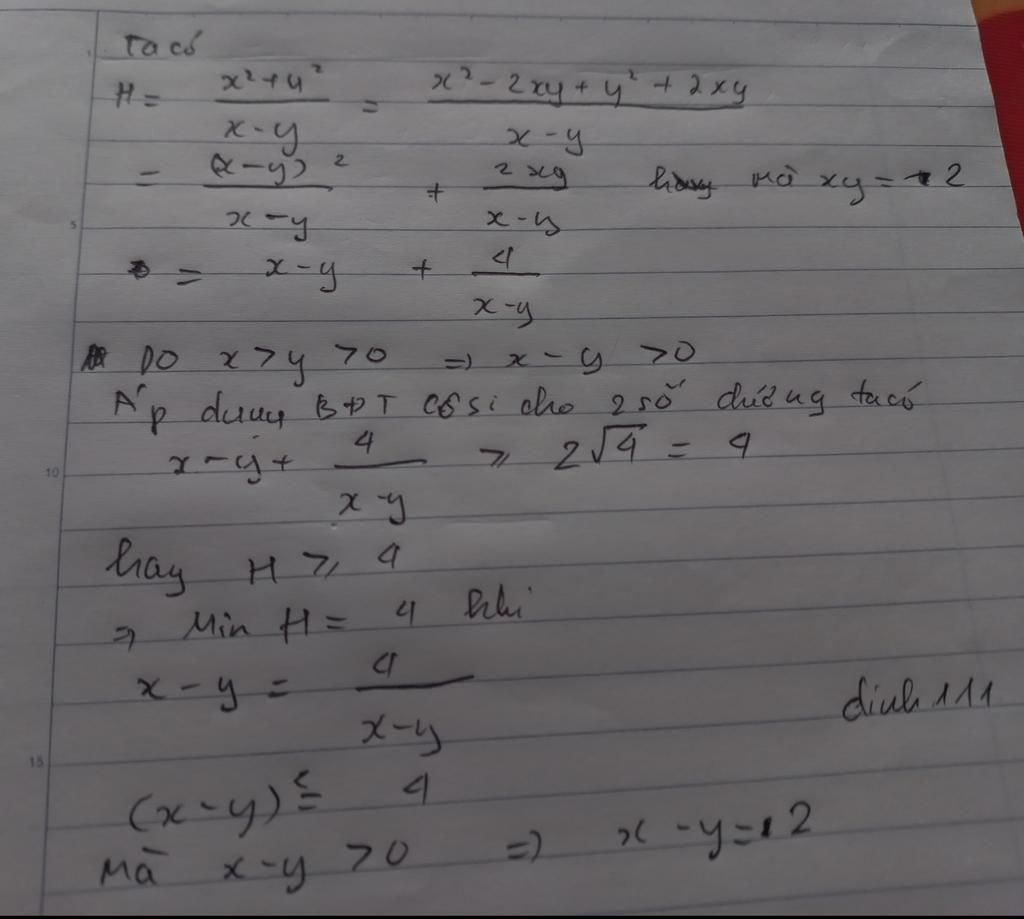 `(x-y)+\frac{4}{x-y} \ge 2\sqrt{(x-y). \frac{4}{x-y}}`
