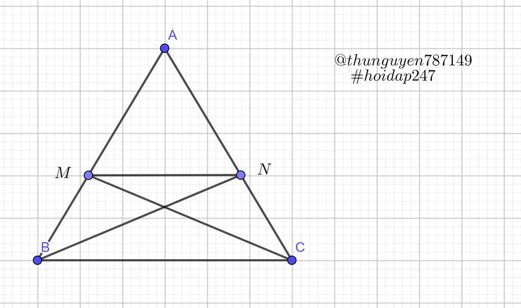 Cho tam giác ABC cân tại A lấy điểm M thuộc AB kẻ đường thẳng qua M song song BC cắt AC tại N. Chứng minh