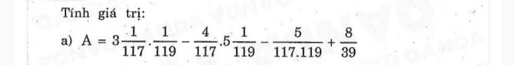$\to A=(3+\dfrac1{117})\cdot\dfrac1{119}-\dfrac4{117}\cdot (5+\dfrac1{119})-\dfrac5{117\cdot 119}+\dfrac8{39}$