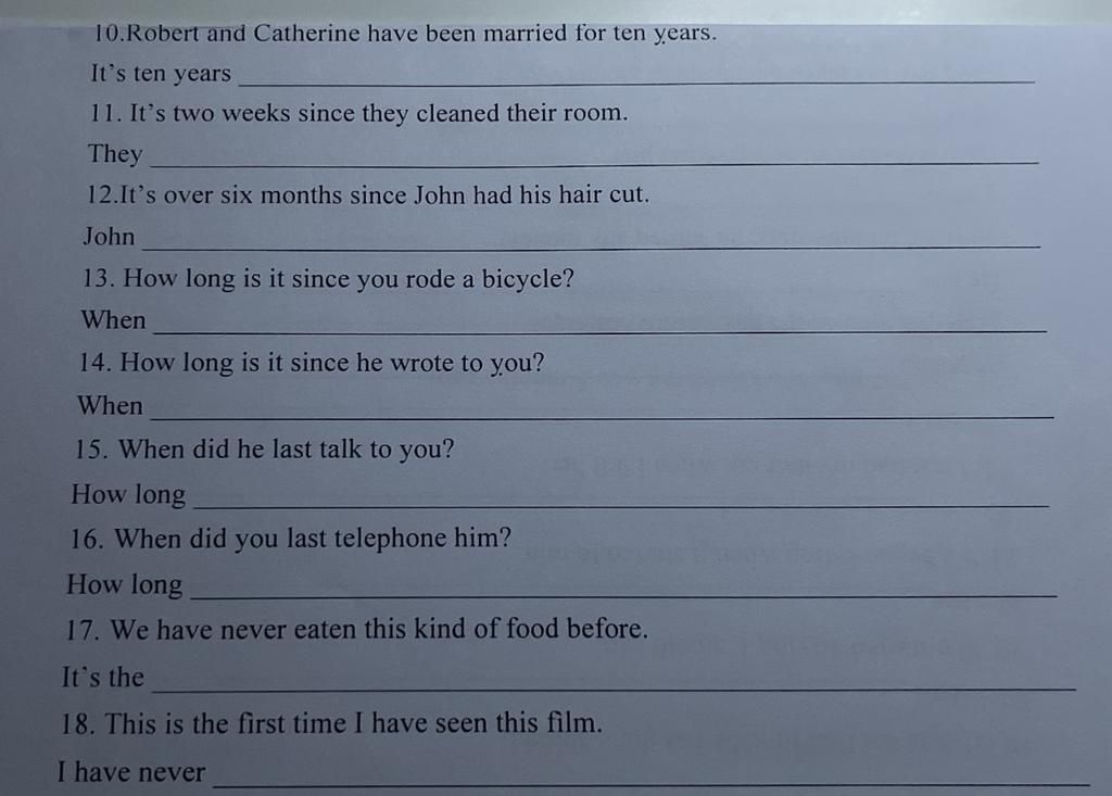 viết các câu sau sao cho nghĩa không đổi dùng thì hiện tại hoàn thành