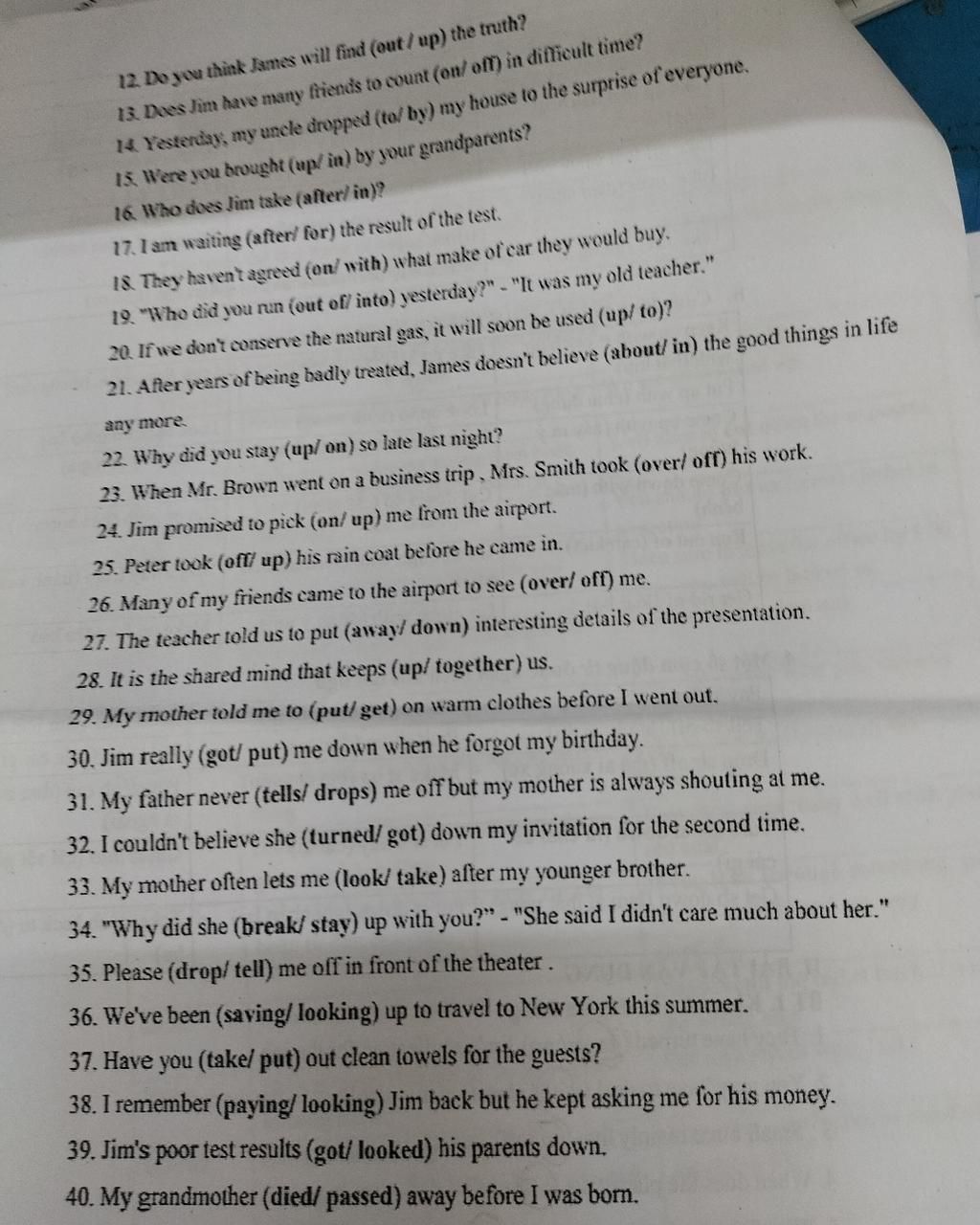 14. Yesterday, my uncle dropped (to/by) my house to the surprise of everyone.