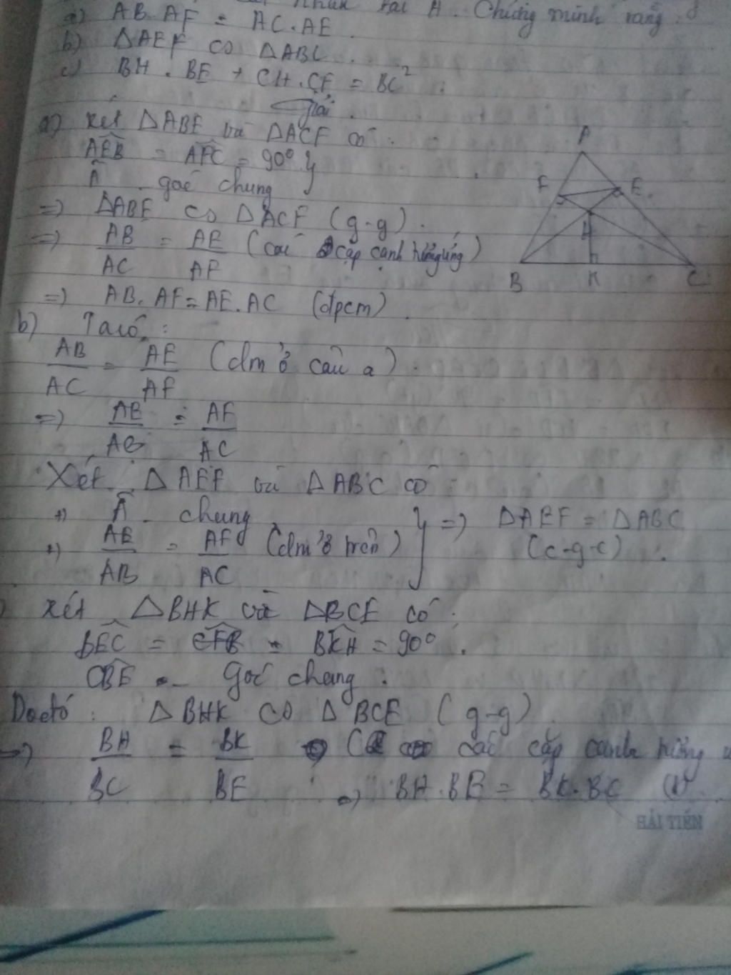 b)Do $ΔABE$ ~$ΔACF \Rightarrow \frac{AB}{AC}=\frac{AE}{AF}$