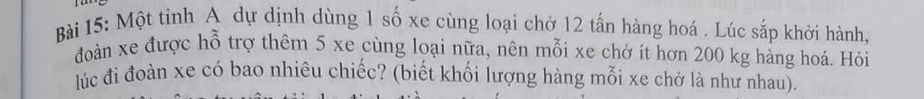 Vậy số xe ban đầu là : `15` xe