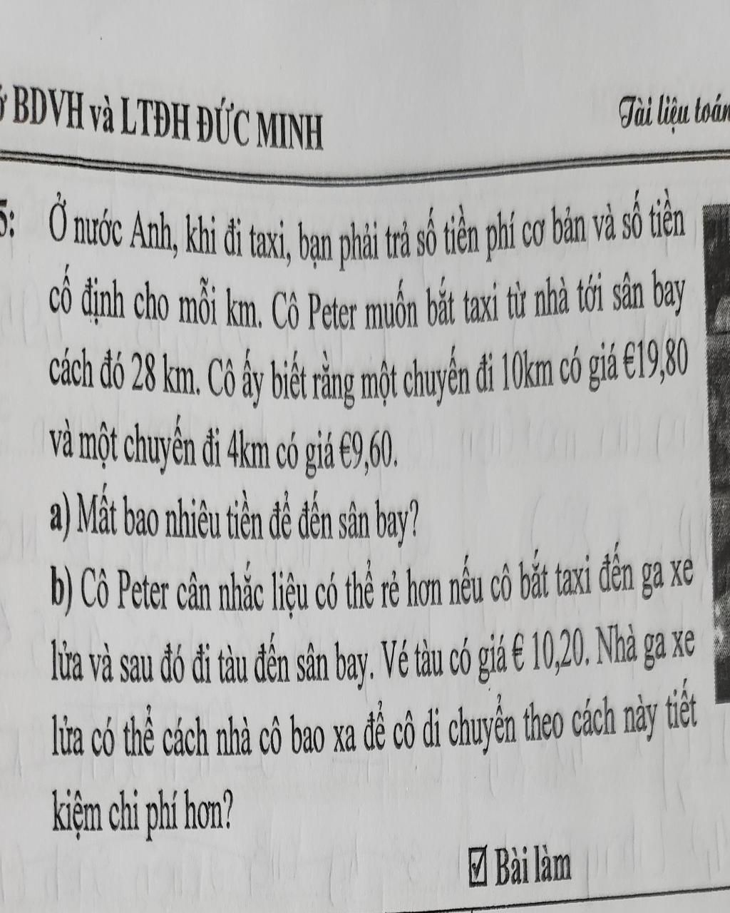 a) Mất bao nhiêu tiền để đến sân bay (28 km):
