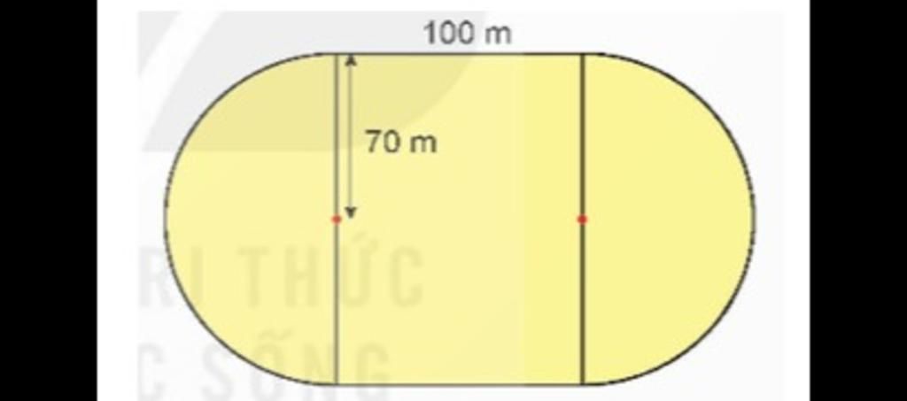Một sân vận động được xây dựng trên mảnh đất tạo bởi một hình chữ nhật và hai nửa hình tròn có kích thước như hình bên. Diện tích mảnh đất đó là m2.