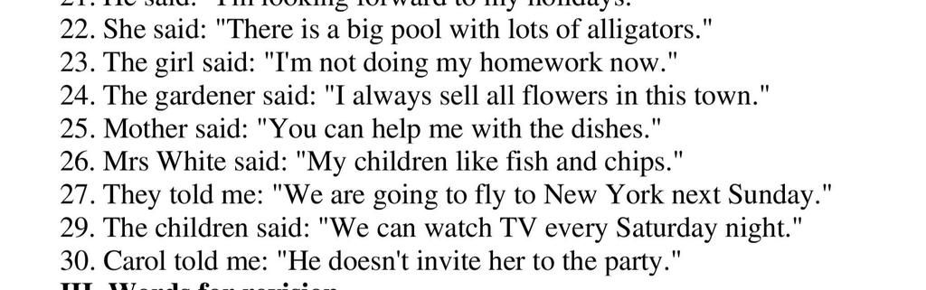 `27.` They said to me that they were going to fly to New York next Sunday.