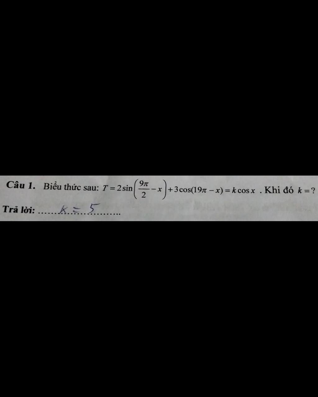 `T=2sin((9pi)/2-x)+3cos(19pi-x)=kcosx`
