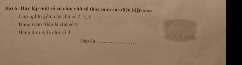 Một số có chín chữ số thõa mãn các điều kiện sau là: