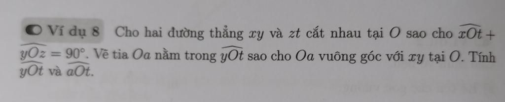 - Ta có `\hat{aOt} + \hat{aOy} = \hat{yOt}`