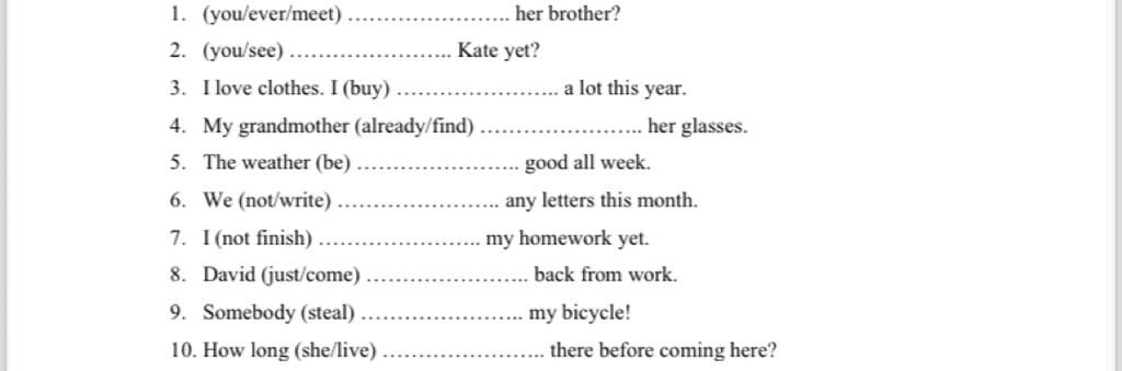 DHNB: before, since + mốc thời gian, for + khoảng thời gian, yet, already, just,....