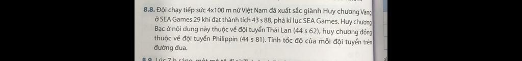 - Tốc độ của đội tuyển nữ Philippin trên đường đua là: