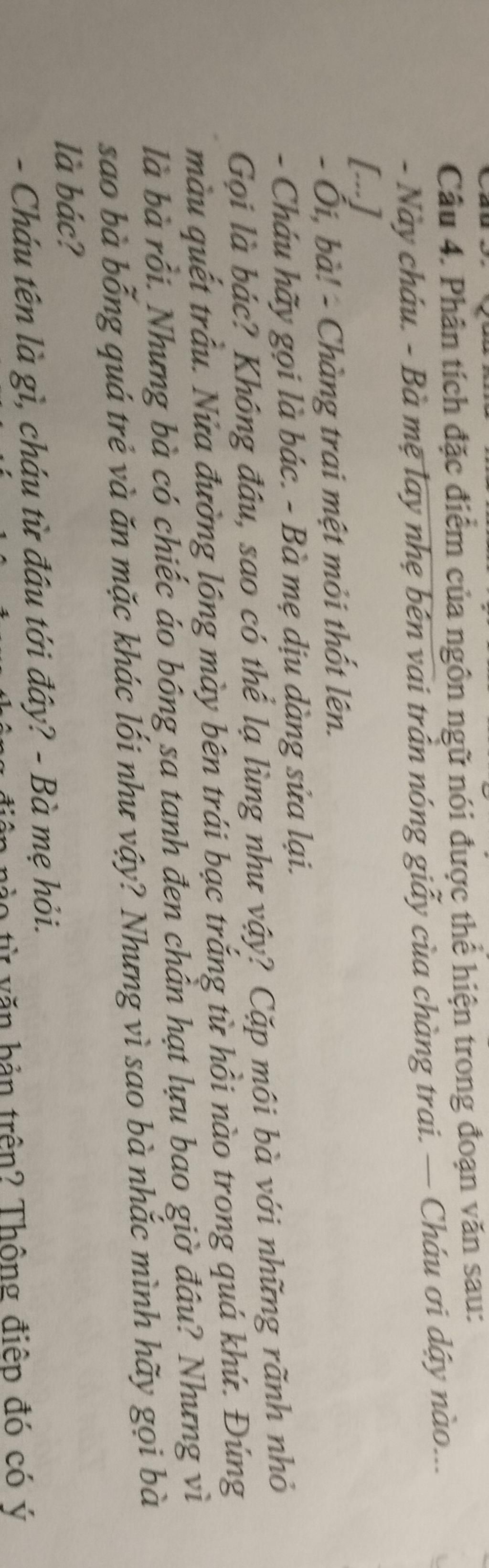 Đoạn văn vừa có ngôn ngữ độc thoại, vừa có ngôn ngữ đối thoại