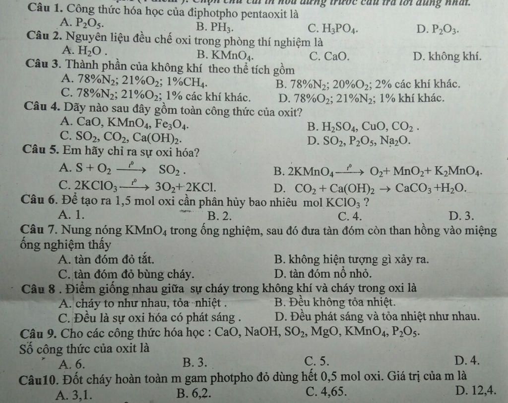 2C ---Oxi vì nhiệt phân hủy tạo ra 2 chất rắn và 1chaats khí là oxi