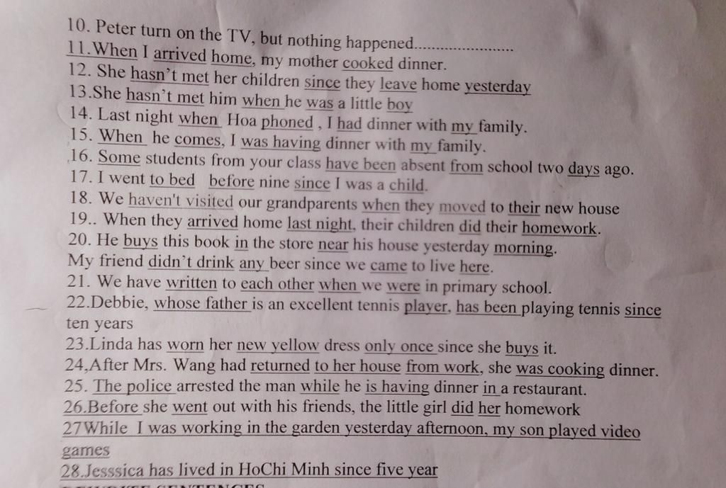 - S + have/has + VpII + since + V2/ed: kể từ khi