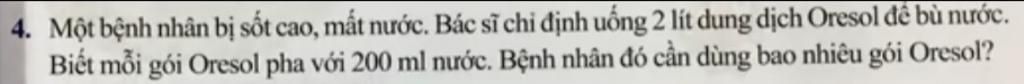 Vậy bệnh nhân đó cần dùng `10` gói Oresol