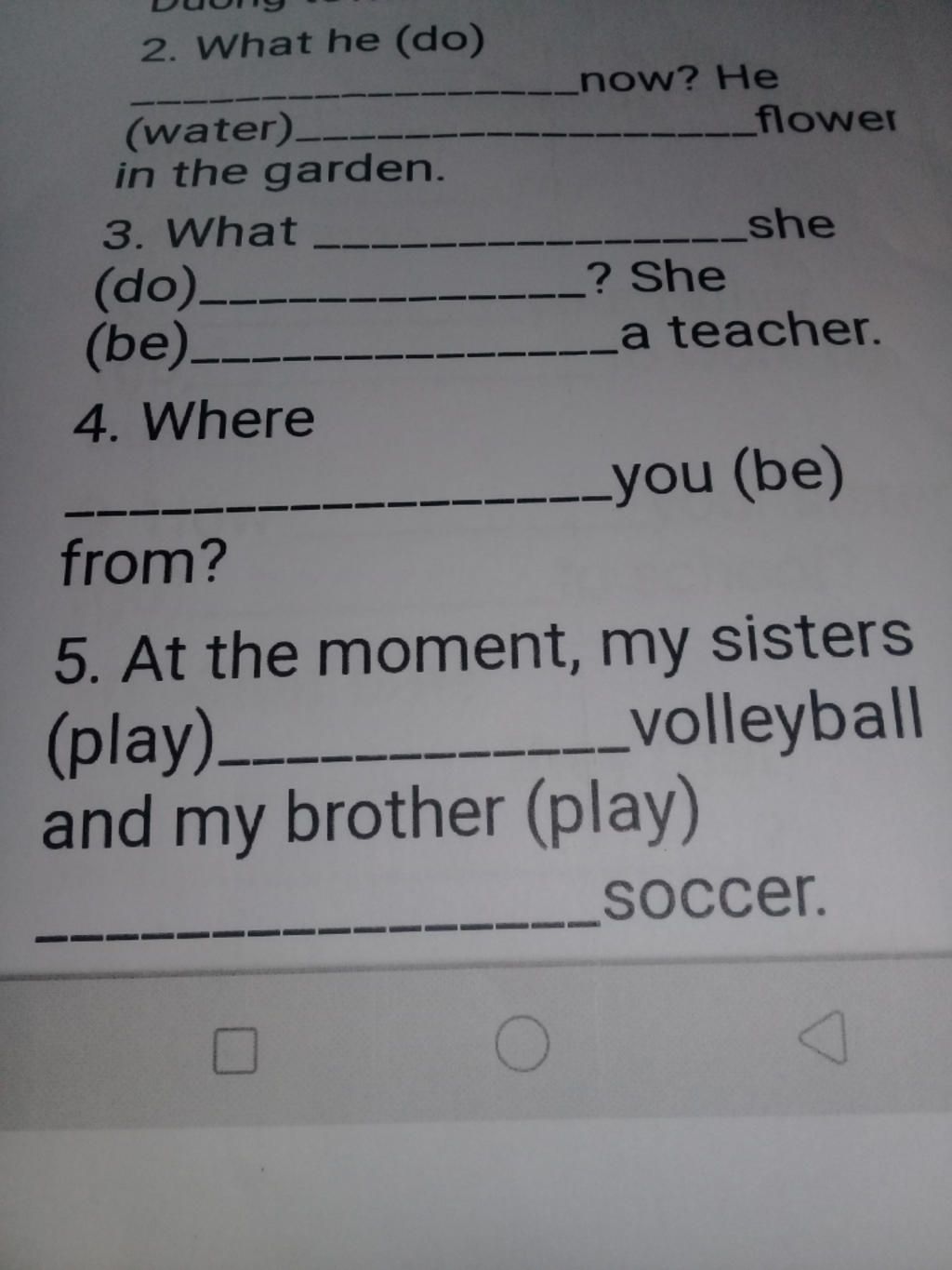 5) at the moment, my sisters are playing volleyball and my brother is playing soccer