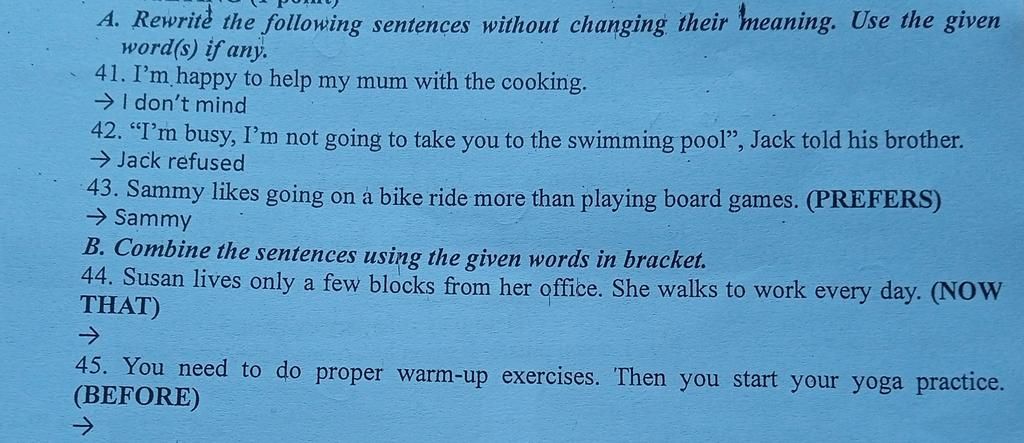 `44.` Susan walks to work every day now that she lives only a few blocks from her office.