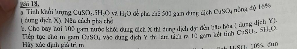 Đong lấy `125g` `CuSO_4.5H_2O` cho vào cốc, khuấy đều được dung dịch `CuSO_4\ 16%`