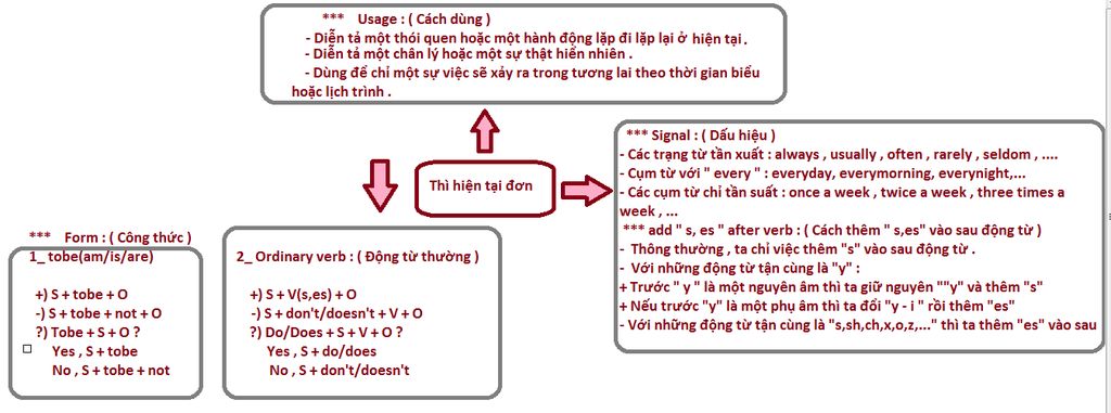 Vẽ bài mindmap về thì hiện tại đơn và thì hiện tại tiếp diễn