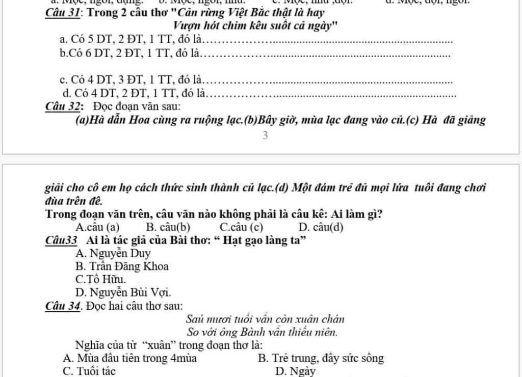 câu 32 khoanh vào b
