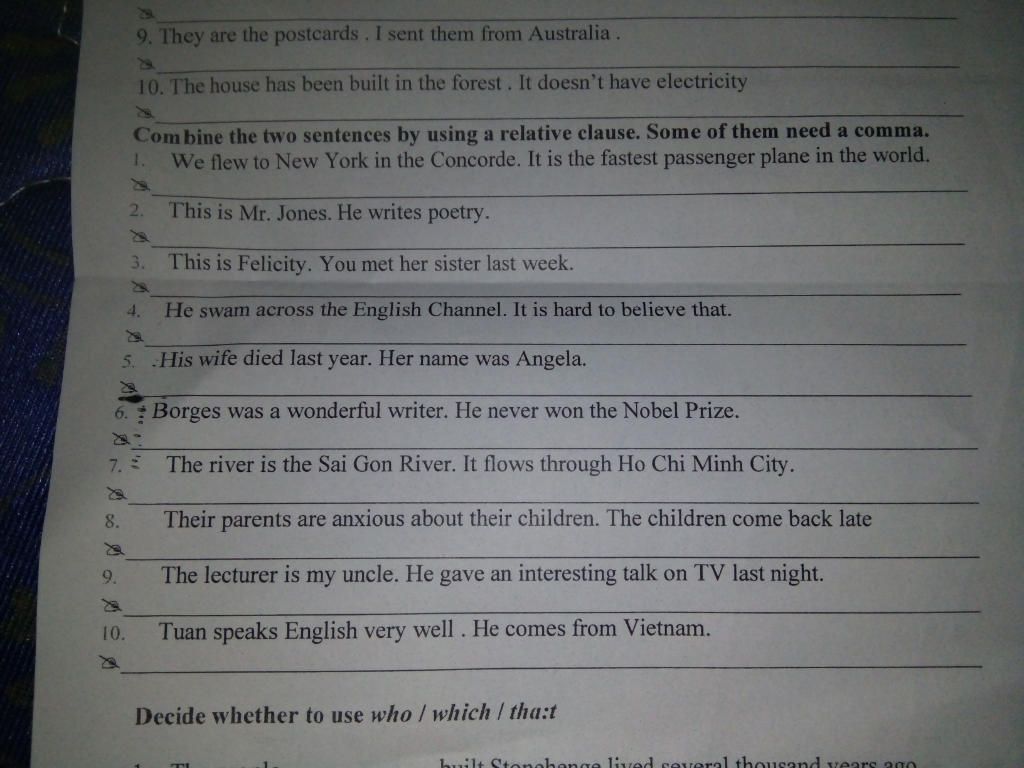 Com bine the two sentences by using a relative clause. Some of them need a comma.