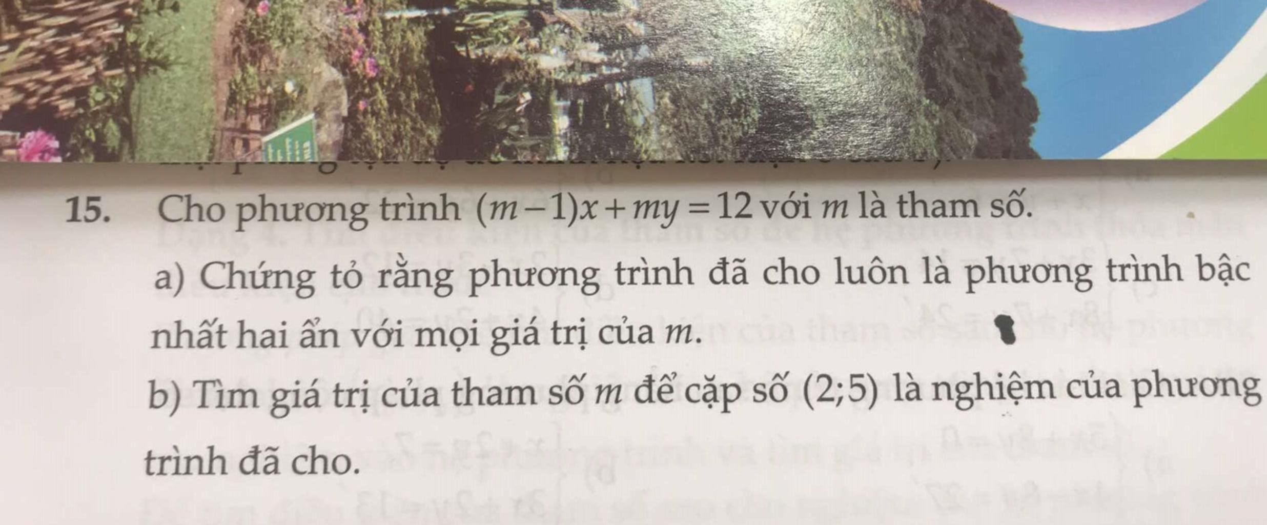 a)Phương trình (m-1)x+my=12 luôn là phương trình bậc nhất 2 ẩn với mọi giá trị của m vì nó luôn có dạng ax+by=c với a và b không đồng thời bằng 0.Ở đây, a=m-1 và b=m, và với mọi giá trị của m, ít nhất 1 trong a và b phải khác 0