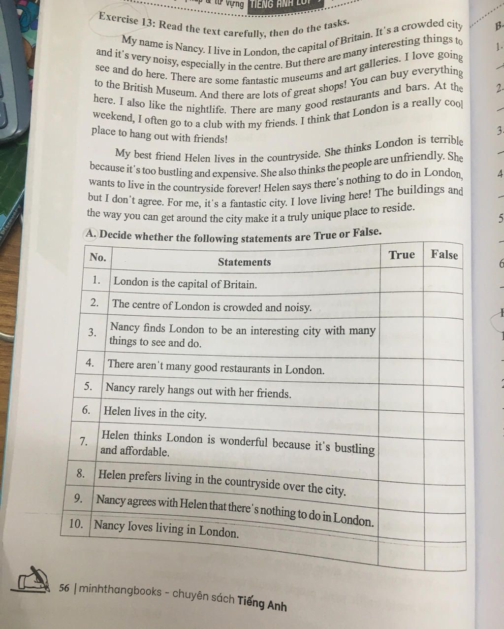 - Dẫn chứng (dòng 3, 4) : Helen says there’s nothing to do in London, but I don’t agree.