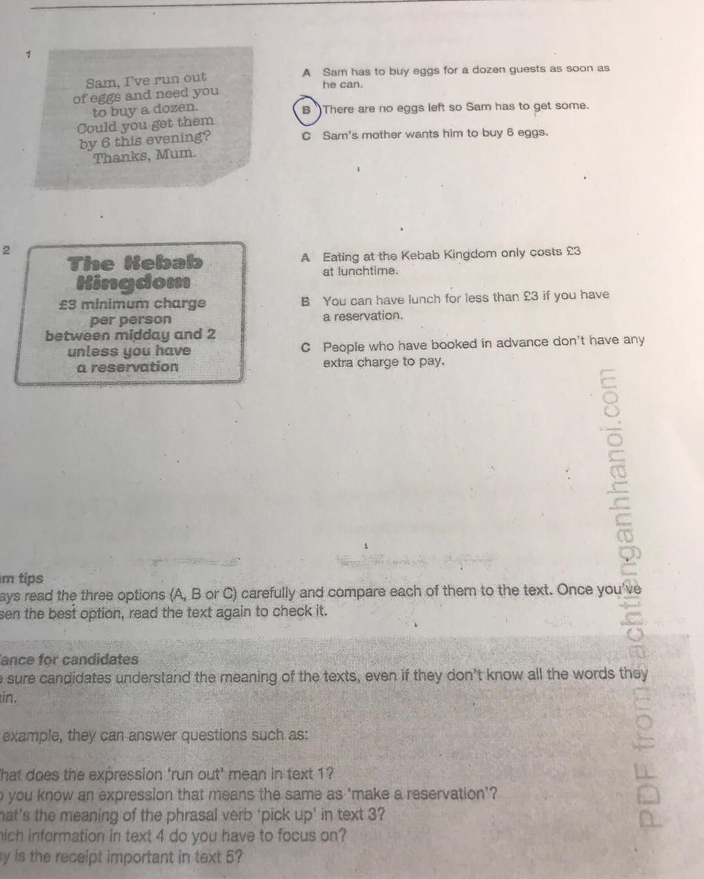 1. B. Theer are no eggs left so Sam has to het some.