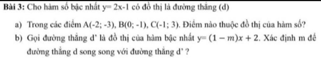 kết luận cả 3 điểm A, B, C không thuộc y = 2x -1