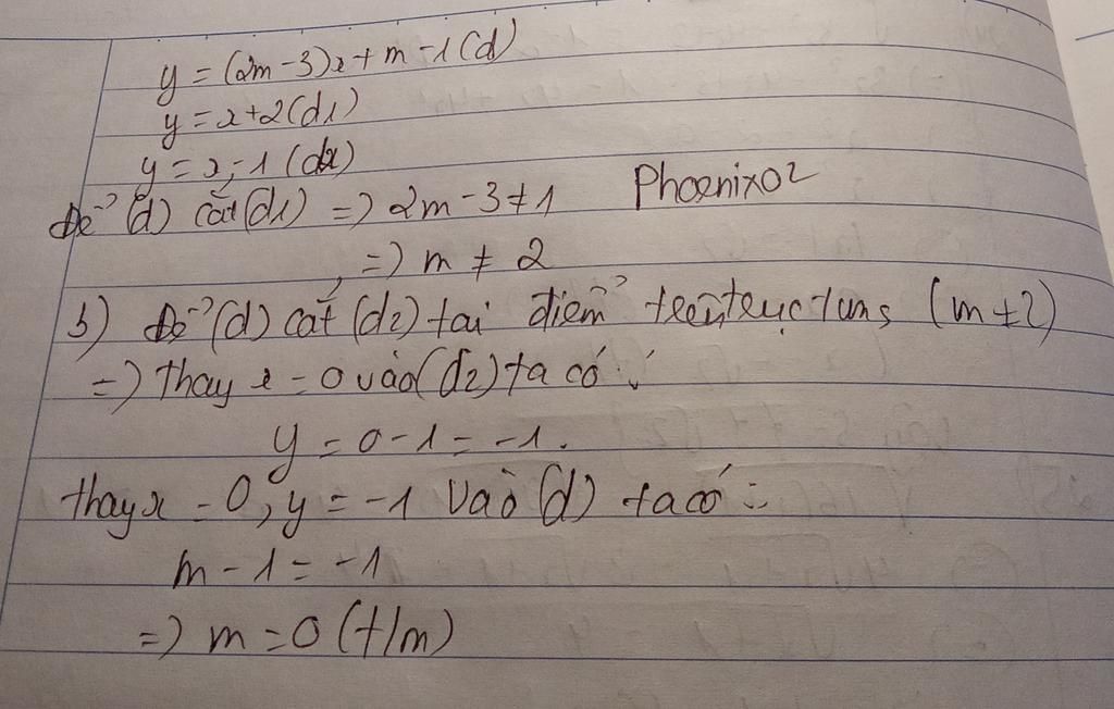 Để `(d)` cắt `y=x-1` tại `1` điểm trên trục tung thì `:`