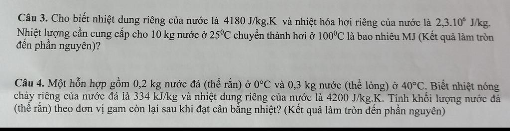 Khi cân bằng nhiệt, khối lượng nước đá còn lại là $m (kg)$