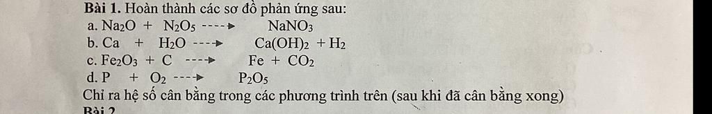 Hệ số cân bằng của phương trình lần lượt là `4:5:2`
