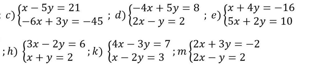 `c){(x-5y=21),(-6x+3y=-45):}`