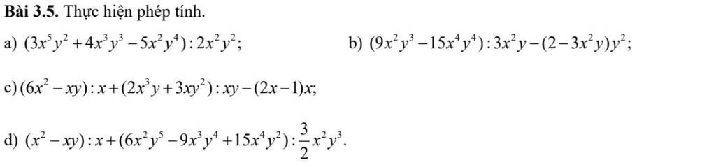 $d)(x^2-xy):x+(6x^2y^5-9x^3y^4+15x^4y^2):\dfrac{3}{2}x^2y^3$