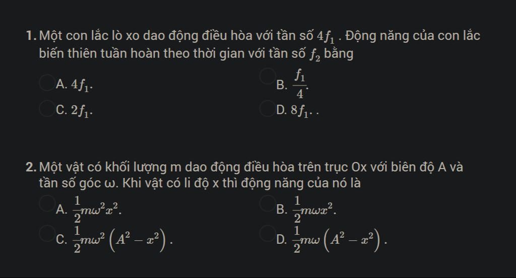 Tần số dao động của động năng là `f' = 2f = 8f_1`