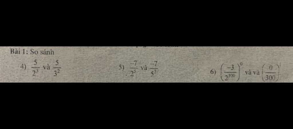 6) `(-3/2^300)^0 và (0/300)^1`
